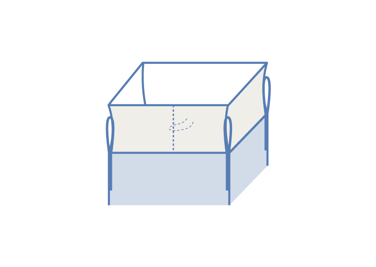 Deze aangenaaide doek rondom de bovenrand van de FIBC, sluit de zak af. Het voordeel is dat de volledige bovenzijde van de big bag toegankelijk is voor het vulproces.